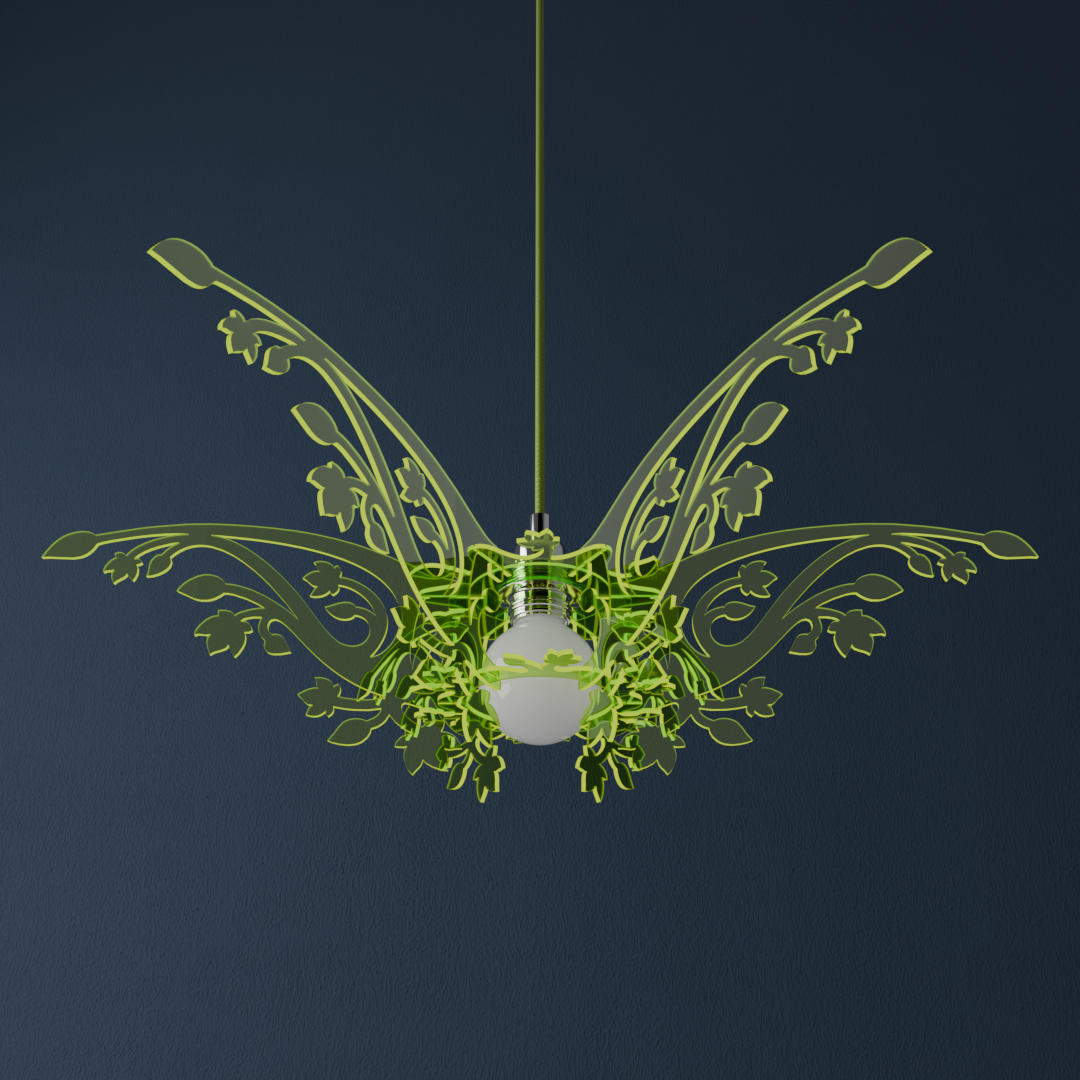 The solution to making a big, yet lightweight lamp that is easily taken apart, was found in lasercutting thin material. We were afraid that 3 mm plywood wood bend over time (turned out it didn’t) and started looking at other materials. We loved working with methacrylate but didn’t like bringing more plastic in the world. Then we discovered a 100% recycled and 100% recyclable methacrylate (Green Cast®).
