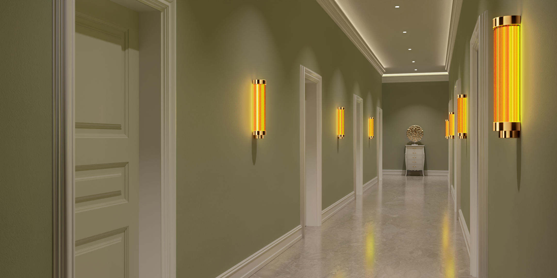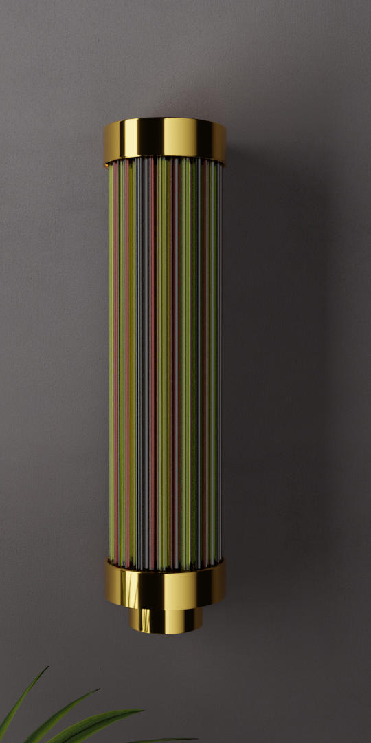 While thinking about the big wall lamps in art deco style that you can still see sometimes in hotels or big buildings, we wondered how they could be transformed to this era and be more colorful.